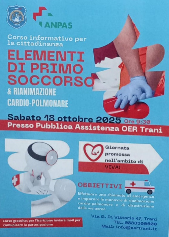 Ottobre il mese dell'educazione al Primo soccorso grazie alla settimana VIVA! (13-19 ottobre) che avrà il suo culmine sabato 18 ottobre 2025 con la giornata mondale sulla rianimazione cardiopolmonare.